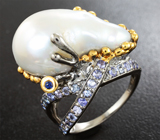 ... с жемчужиной барокко, синим сапфиром и танзанитами
