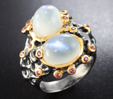 Изысканное серебряное кольцо с лунным камнем и родолитами