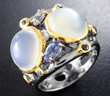 Серебряное кольцо с лунным камнем, аметистом и танзанитами