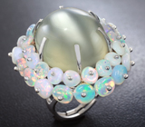 Серебряное кольцо с лунным камнем 4,29 карат и перидотами
