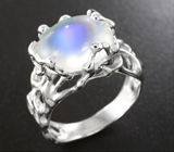 Серебряное кольцо с лунным камнем 4,37 карата, голубыми...