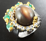 Серебряное кольцо с лунным камнем, жемчугом, цитринами...
