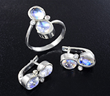Серебряное кольцо с лунным камнем 3,45 карата и голубыми...