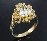 Золотое кольцо с кабошоном и ярким ограненным лунным...
