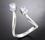 Изящное cеребряное кольцо с лунным камнем и черными...