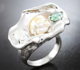 Серебряное кольцо с жемчужиной, голубым топазом и лунным...