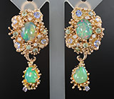 Серьги с опалами, зелеными сапфирами, танзанитами...
