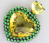 Брошь/кулон с крупным цитрином, разноцветными сапфирами и цаворитами!