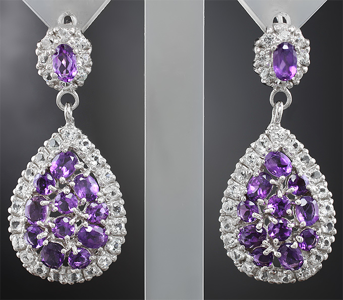 Замечательные серебряные серьги с уругвайскими аметистами!Магазин // Rabhasa Venudary // Серьги