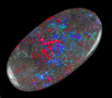 Вашему вниманию предлагается кристаллический черный опал! Основные цвета опалесценции: красный, желтый и зеленый. Ниже приводятся ювелирные характеристики.