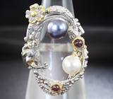 Серебряное кольцо с жемчугом, родолитами и изумрудами!Магазин // Эксклюзив серебро // Кольца