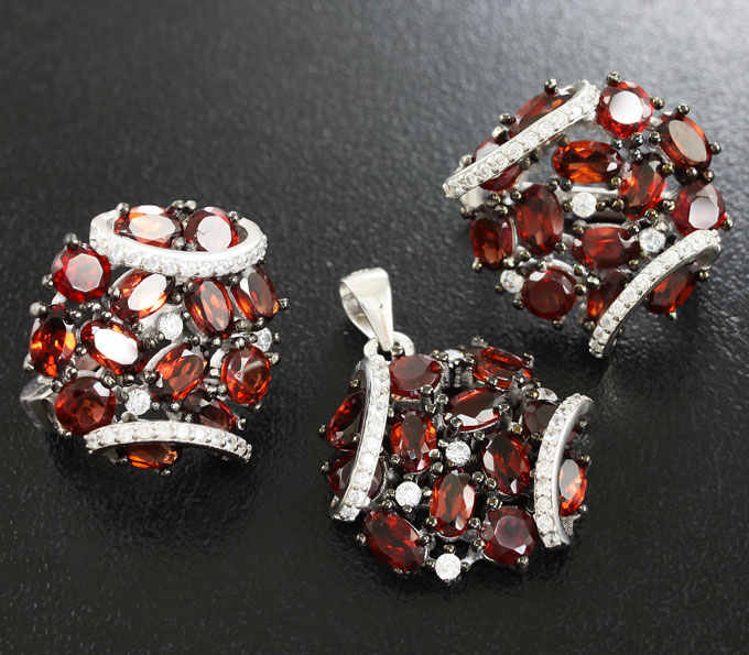 Прелестный серебряный комплект с мозамбикскими гранатами!Магазин // Rabhasa Venudary // Комплекты