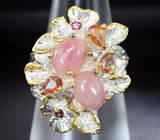 Серебряное кольцо с розовыми перуанскими опалами, сапфирами и родолитами!Магазин // Эксклюзив серебро // Кольца