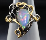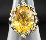 Серебряное кольцо с кристаллическим эфиопским опалом и цаворитами!