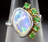 Серебряное кольцо с кристаллическим эфиопским опалом и цаворитами!