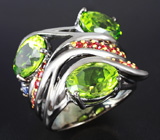 Серебряное кольцо c черной шпинелью и перидотами!Магазин // Эксклюзив серебро // Кольца