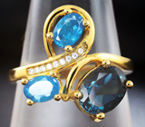 Серебряное кольцо с насыщенно-синим топазом и «неоновыми» апатитами!Магазин // Rabhasa Venudary // Кольца