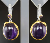 Серебряные серьги с кабошонами сливовых аметистов 28+ карат и перидотами!Магазин // Эксклюзив серебро // Серьги