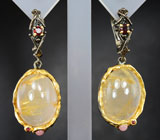 Серебряные серьги с рутиловым кварцем 27+ карат, розовым опалами и мозамбикскими гранатами!Магазин // Эксклюзив серебро // Серьги