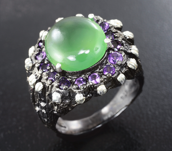 Серебряное кольцо с хризопразом и аметистами!Магазин // Эксклюзив серебро // Кольца