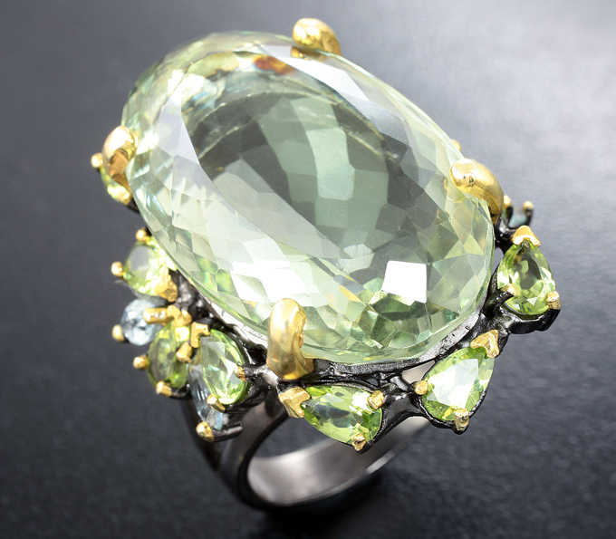 Серебряное кольцо с зеленым аметистом 35+ карат, перидотами и голубыми топазами!Магазин // Эксклюзив серебро // Кольца