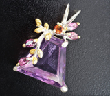 Серебряный кулон с аметистом 11+ карат, золотистым турмалином и родолитами!Магазин // Эксклюзив серебро // Кулоны