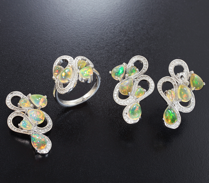 Роскошный серебряный комплект с кристаллическими эфиопскими опалами!Магазин // Rabhasa Venudary // Комплекты