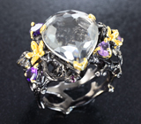 Серебряное кольцо с бесцветным кварцем, аметистами и родолитами!Магазин // Эксклюзив серебро // Кольца