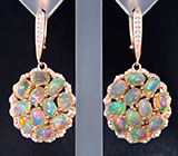 Шикарные серебряные серьги с кристаллическими эфиопскими опалами!Магазин // Rabhasa Venudary // Серьги
