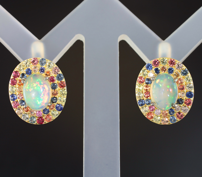 Праздничные серебряные серьги с эфиопскими опалами и разноцветными сапфирами бриллиантовой огранки!Магазин // Rabhasa Venudary // Серьги