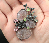 Серебряная брошь с резными аметринами 39,34 карата, розовыми турмалинами и перидотами!Магазин // Эксклюзив серебро // Броши