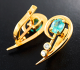 Золотые серьги с "неоновыми" параиба турмалинами 1,13 карата и бриллиантами!Магазин // Эксклюзив золото // Серьги