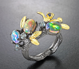 Серебряное кольцо с кристаллическими эфиопскими опалами и голубыми топазами!Магазин // Эксклюзив серебро // Кольца