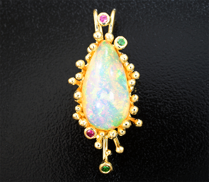Золотой кулон с кристаллическим эфиопским опалом 4,55 карата, рубинами и цаворитами!Магазин // Эксклюзив золото // Кулоны