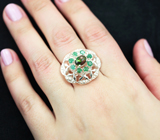 Серебряное кольцо с кристаллическим черным опалом и изумрудами!Магазин // Эксклюзив серебро // Кольца