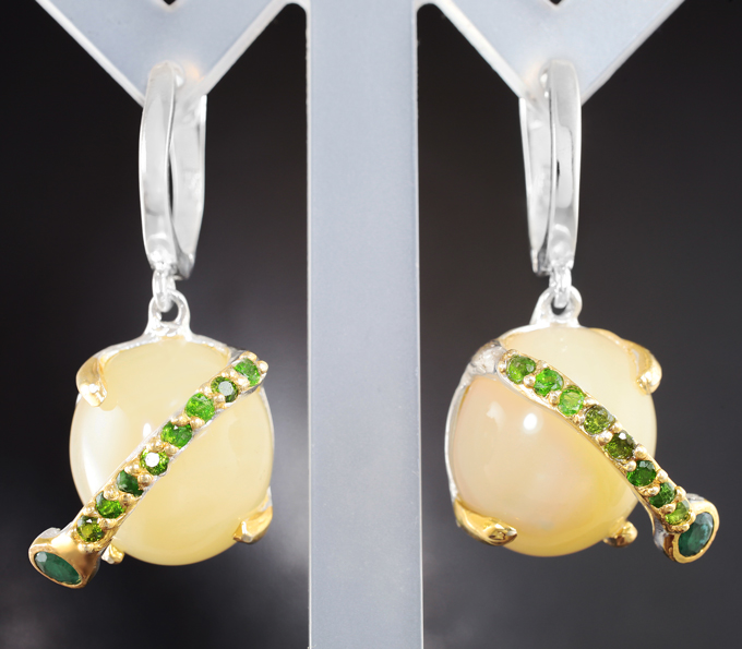 Серебряные серьги с халцедоном 36,52 карата, изумрудами и диопсидами!Магазин // Эксклюзив серебро // Серьги