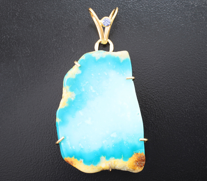 Крупный золотой кулон с контрастным слайсом бирюзы 32,87 карата и танзанитом!Магазин // Золотая линия // Кулоны