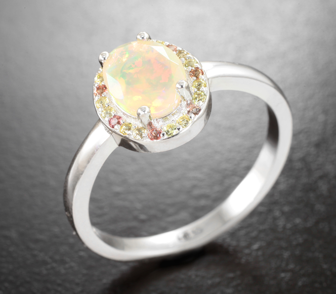 Серебряное кольцо с ограненным эфиопским опалом и разноцветными сапфирами!Магазин // Rabhasa Venudary // Кольца