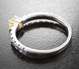 Лот № r-19584 Серебряное кольцо с кристаллическим эфиопским опалом и васильковыми сапфирами! Материал: Серебро 925 Вес изделия: 2,2 грамм Размер: 18 (Не подходит размер?)