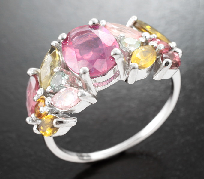 Праздничное серебряное кольцо с рубином и разноцветными турмалинами!Магазин // Rabhasa Venudary // Кольца
