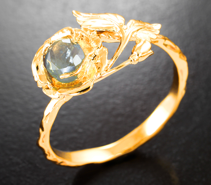 Золотое кольцо с уральским александритом оттенка морской волны 0,76 карата!Магазин // Эксклюзив золото // Кольца