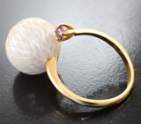 Золотое кольцо с крупной перламутрово-розовой резной жемчужиной Edison 16,96 карата и пурпурно-розовой шпинелью!Магазин // Эксклюзив золото // Кольца