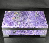Инкрустация: Долерит, Серпентинит, Чароит Вес изделия: 324 грамм Размер: 99 х 69 х 41 мм Цена: 11 500 руб.Добавить в корзину Подробное описание: Шкатулка для украшений из сибирского чароита, серпентина и долерита!