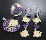 Материал: Серебро 925 Инкрустация: Аметист, Кубик циркония Вес изделия: 7,8 грамм Размер: 17,5 Цена: 5 870 руб.Добавить в корзину Подробное описание: Яркий cеребряный комплект с аметистами!
