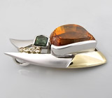 Материал: Серебро 925 Инкрустация: Бриллиант, Турмалин, Цитрин Вес изделия: 37,4 грамм Размер: 59 х 32 мм Цена: 43 170 руб.Забронировано. Подробное описание: Кулон с крупным цитрином авторской огранки, зеленым турмалином и бриллиантами!