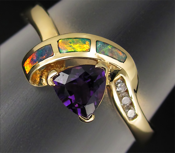 Кольцо с аметистом, дублет опалами и бриллиантами