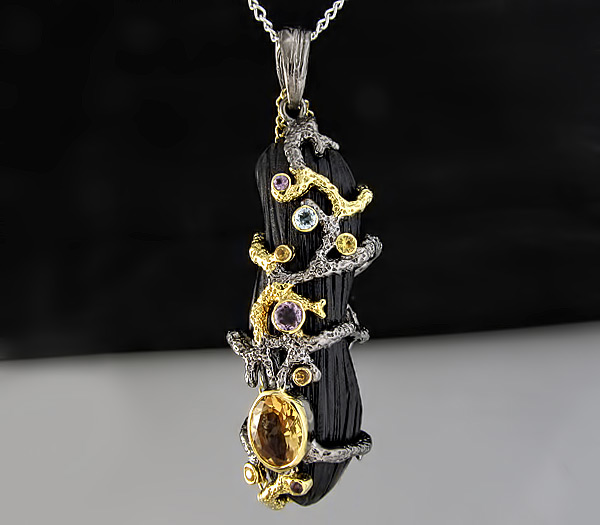 Кулон из дерева Sono и серебра 925 пробы с самоцветамиВыставка-продажа // Art Jouel // Кулоны