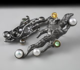Серьги из серебра 925 пробы с жемчугом, цаворитами гранатами и золотистыми сапфирамиВыставка-продажа // Art Jouel // Серьги
