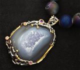 Серебряное колье с агатовыми сферами, друзой агата, аметистами и родолитами гранатами