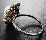 Серебряное кольцо с эфиопским опалом, цаворитами и синими сапфирами